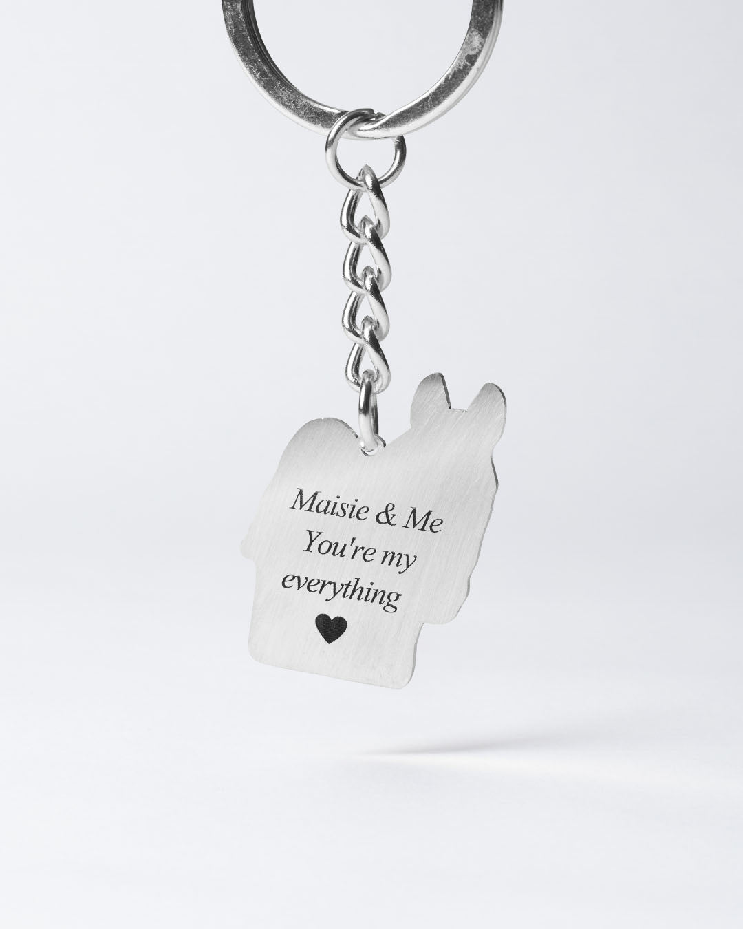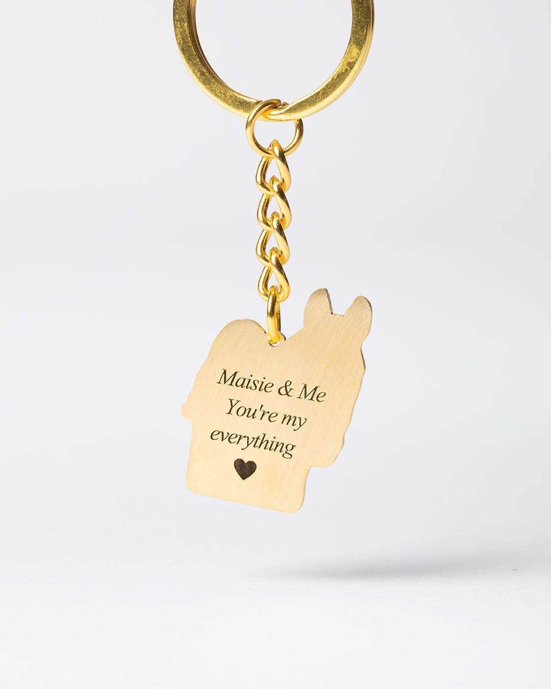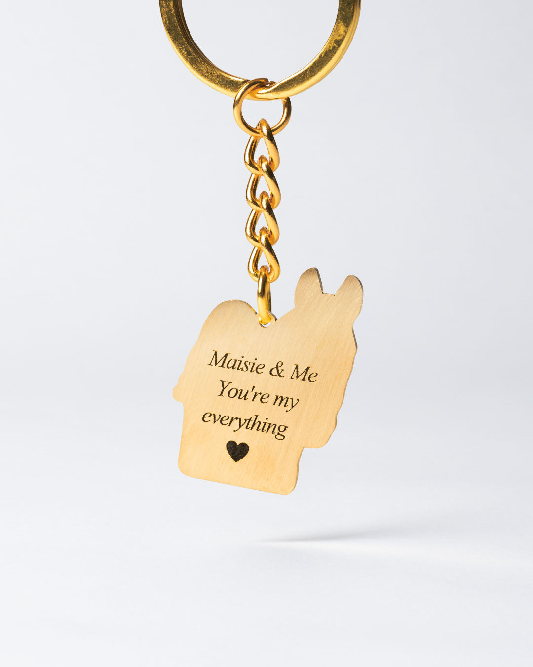 "I'm over the moon with my new personalized dog keychain! It's been tough not seeing my dog's face every day.."